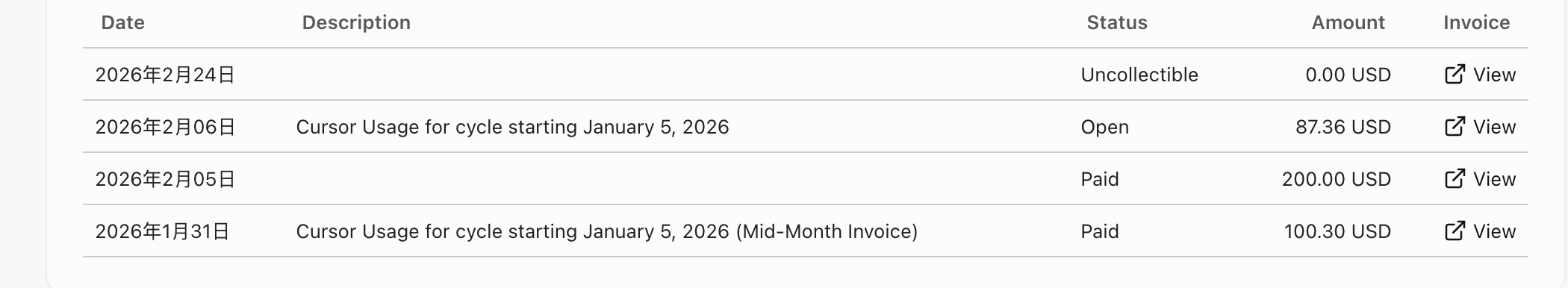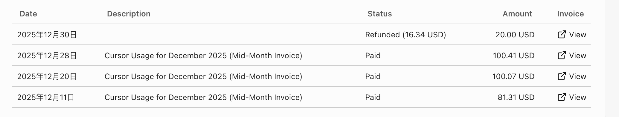 正式开始之前,先看看我的cursor支付情况